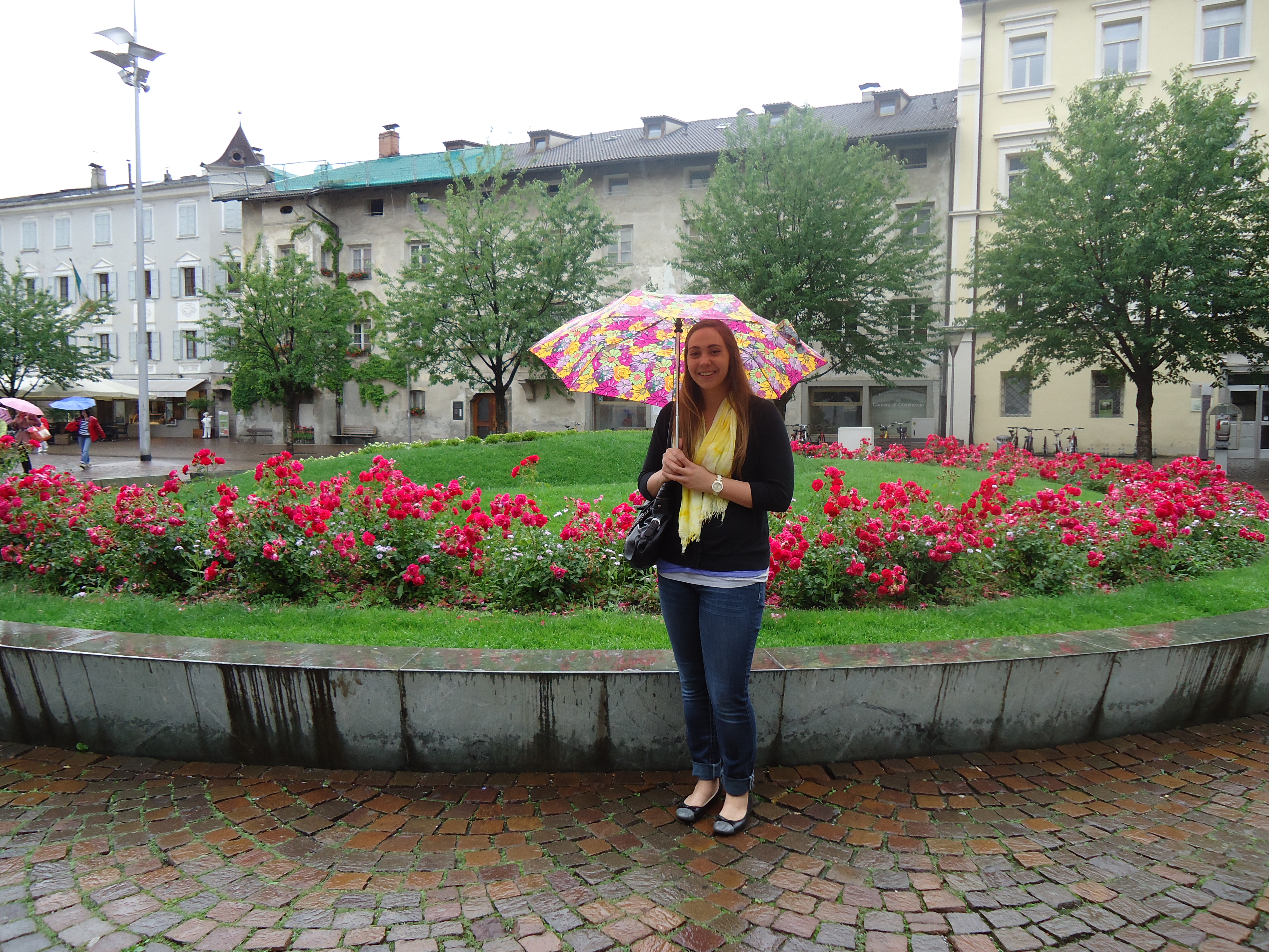 We arrived at the train station in the pouring rain and had trouble getting directions into the center of town due to language differences. In our parade of umbrellas, we crossed the same river 4 times on different bridges before stopping at a hotel for guidance and map. Eventually we wandered into the main square where everything was closed.