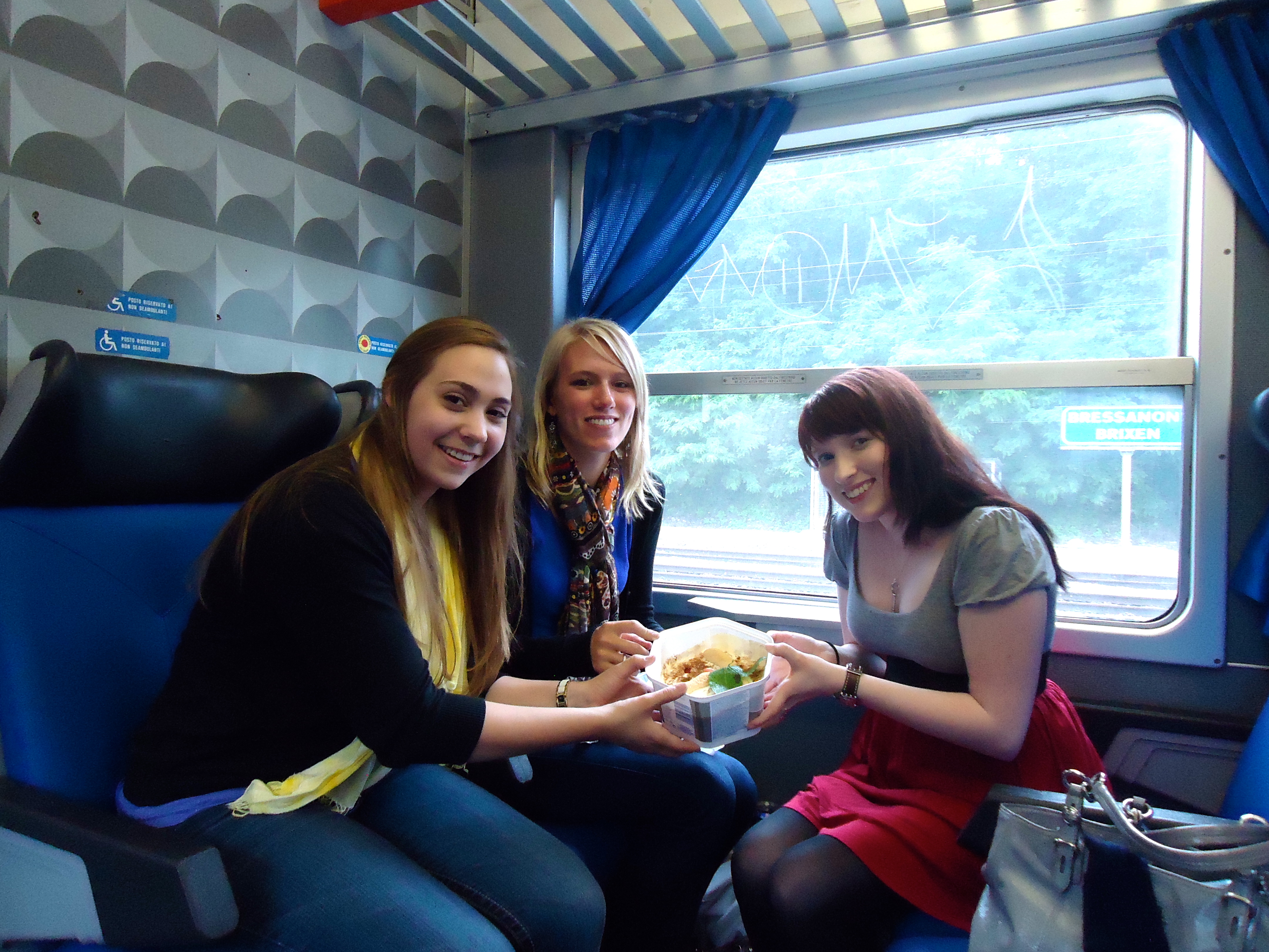 Eating authentic Italian tiramisu on the train out of a giant Philadelphia cream cheese container. Wandering around an old, wooden church. Train ride through, around & over the mountains. Enjoying some absolutely incredible Italian pasta. Sharing so much laughter. Gelato. Nearly missing a train transfer that we didn’t know we needed on the journey back to Innsbruck. Discounted return train tickets.